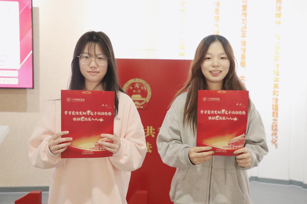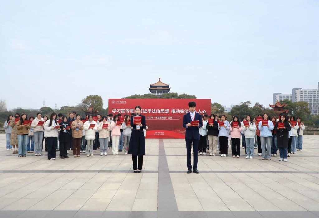 江科网讯(记者 刘莹)治国凭圭臬,安邦靠准绳。12月4日,我国迎来第十二个国家宪法日。围绕“学习宣传贯彻习近平法治思想,推动宪法深入人心”的核心主题,我校在临水广场举办宪法宣传日系列活动,各学院师生代表齐聚一堂,以庄严仪式传承宪法精神,筑牢法治信仰。