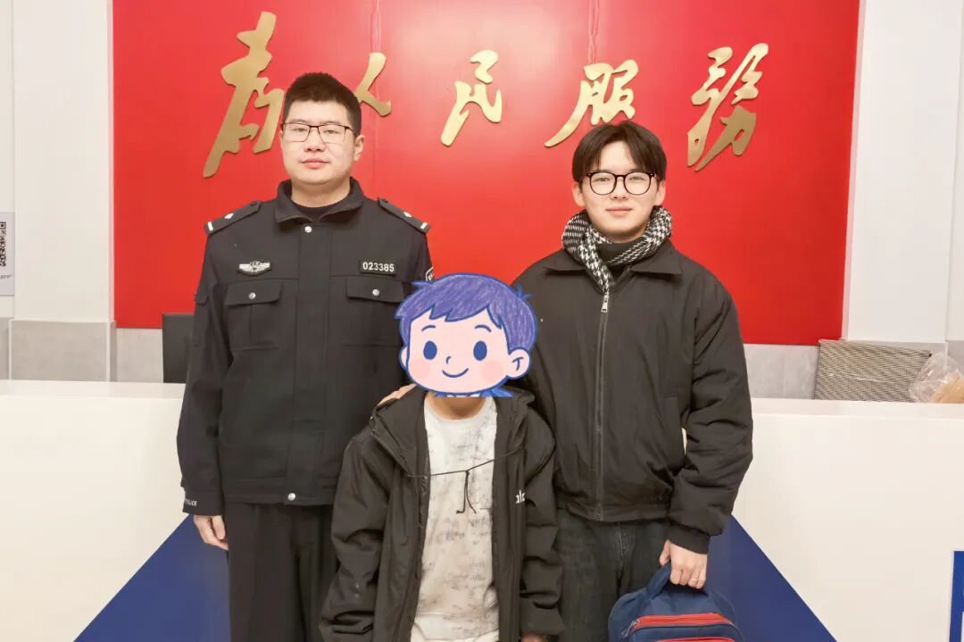 “警察哥哥,这小弟弟在路边好像迷路啦!”当晚7点左右,这对“画风超萌”的一大一小组合出现在马回岭派出所,吴鑫豪向值班民警说明情况后,民警迅速接过了这份温暖的“接力棒”。一杯热水暖心田,几句安抚稳情绪,民警一边温柔照料小王,一边根据他提供的家庭信息快速开展核查工作。高效的联动与细致的排查之下,不到半小时,民警便成功联系上了正在四处焦急寻找孩子的家人。当家长匆匆赶到派出所,看到孩子安然无恙地坐在值班室里,与民警轻声交谈时,悬着的心终于落了地,连连向民警和未曾留下姓名的吴鑫豪表达谢意。