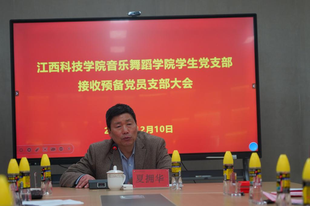 江科网讯(通讯员 金楠 魏芳)12月10日,音乐舞蹈学院学生党支部召开接收预备党员大会。校党委副书记、纪委书记夏拥华到会指导。音乐舞蹈学院党委书记郝卫军,学院党委专职副书记、团委书记梁智锋,党委专职组织员仄晨等出席会议。学院全体学生党员、预备党员及学生骨干参会,共同见证一批优秀学子加入党组织。