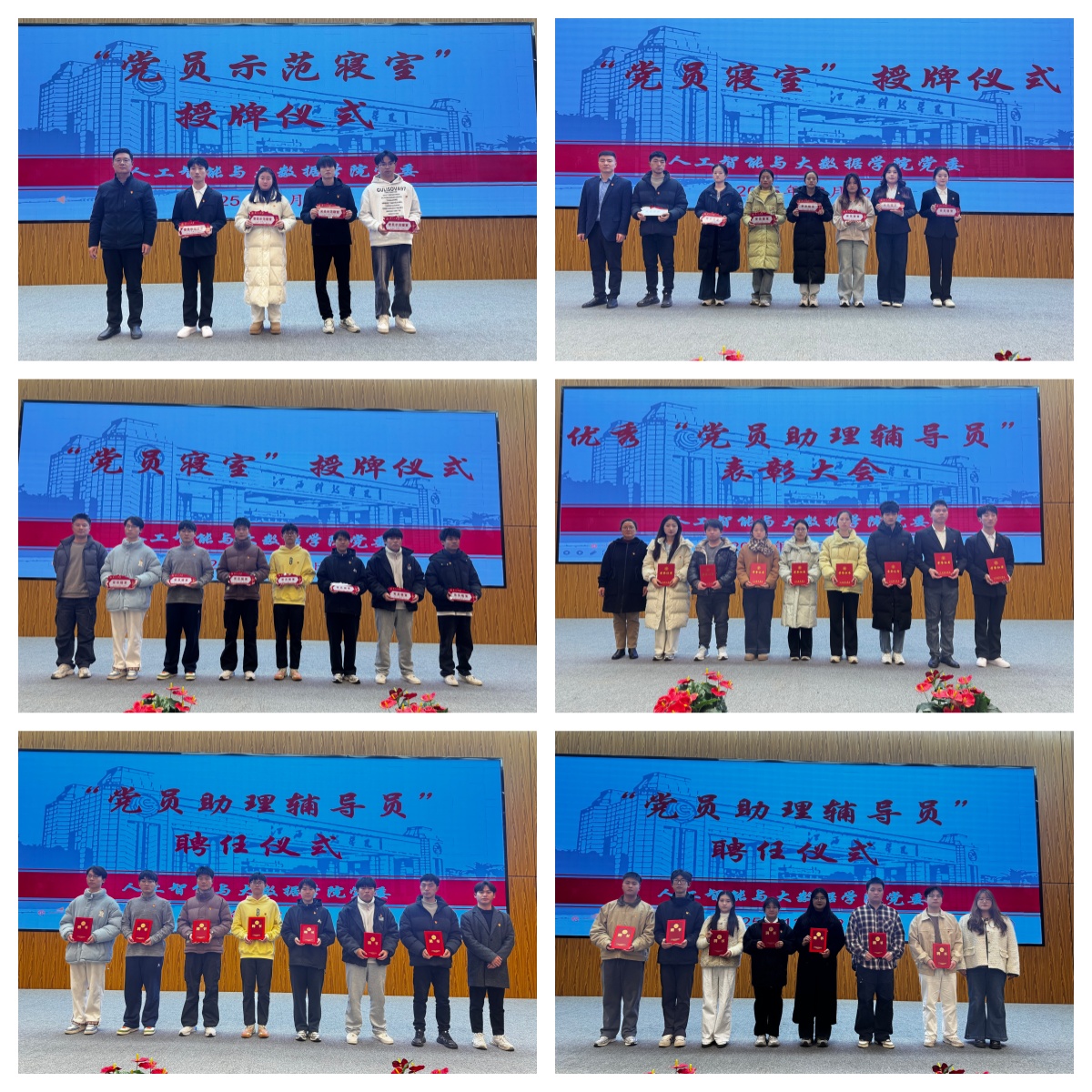 会议宣读《关于评定第一批“启智鹓”党员示范寝室的决定》《关于开展第二批“启智鹓”党员寝室挂牌活动的通知》《关于表彰第一批“启智鹓”优秀党员助理辅导员的决定》《关于聘任第二批“启智鹓”党员助理辅导员的决定》《关于开展2026年“启智鹓”党员在身边主题活动的通知》,并为“党员示范寝室”“党员寝室”授牌,为“优秀党员助理辅导员”颁奖,为“党员助理辅导员”颁发聘书。