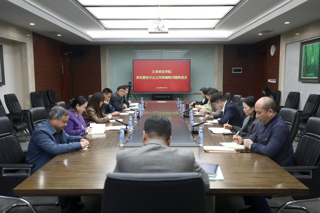 江科网讯(通讯员 魏芳)3月17日,我校召开持续深化整治不正之风和腐败问题工作推进会。校党委副书记、纪委书记夏拥华主持会议并讲话,江科附中、校(党)办、财务处、人事处、总务处、教务处、学工处、招生就业处、督导处、学生资助管理中心、医务所等相关部门负责人参加会议。