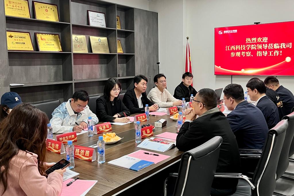 陈庆勤副校长一行实地参观企业展厅,认真听取企业发展历程、业务板块及产业布局介绍。江西启越文化传媒有限公司深耕传媒领域,在内容创作、品牌运营、文化传播等方面成果丰硕,产业方向与我校文化传播、艺术设计等专业高度契合,具备良好的校企合作基础。