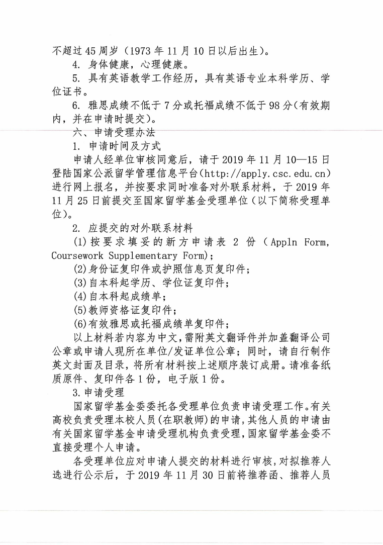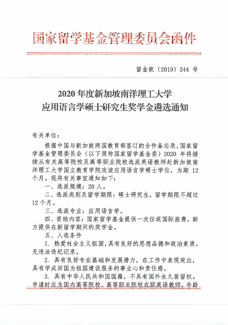 关于国家留学基金委2020年度新加坡南洋理工大学应用语言学硕士研究生奖学金遴选通知