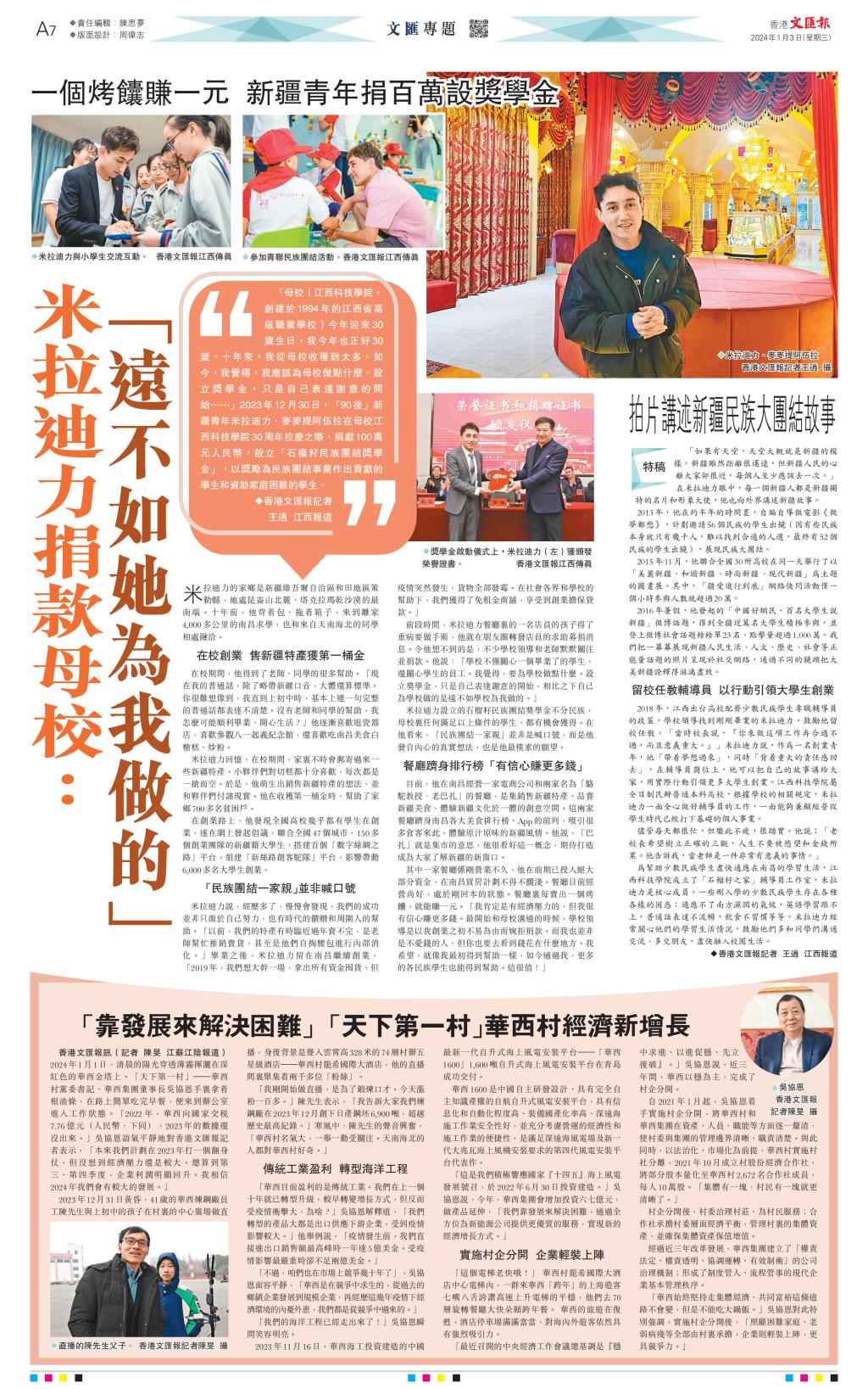 【香港文汇报】米拉迪力捐款母校:远不如她为我做的