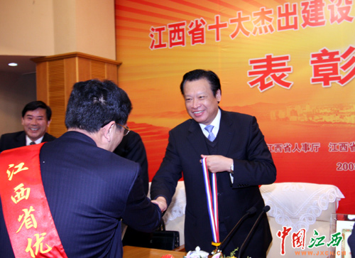中国江西新闻网11月25日南昌讯(记者 邓小勇 报道)11月25日,改革开放30周年江西省十大杰出建设者及20名优秀建设者表彰大会在南昌召开。省委副书记、省长吴新雄出席大会,并为杰出、优秀建设者颁发奖牌,省委副书记王宪魁为获奖者颁发奖牌并讲话,省人大常委会副主任胡振鹏,省政协副主席李华栋出席大会,省政协副主席、省委统战部部长宋晨光主持表彰大会,省工商联主席黄代放宣读了《关于改革开放30周年江西省十大杰出建设者及二十名优秀建设者的表彰决定》。