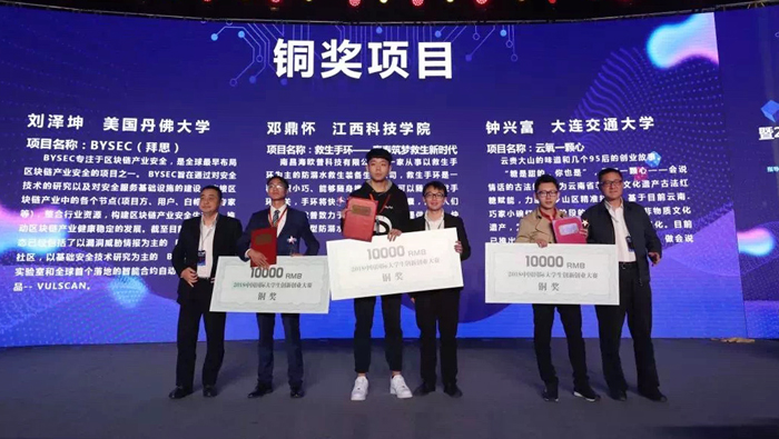 江科网讯(通讯员 吴有亮)11月25日,“余您携手▪杭向未来”2018年中国国际大学生创新创业大赛在杭州落下帷幕。我校财经学院参赛项目《救生手环——青春筑梦救生新时代》(团队成员:邓鼎怀、邓安琪、杨政、李瑞鑫、夏帆、黄晨兴、孙俊鹏、李承阳、王晓宇;指导老师:黄爱科、李卫平、王超)获得国家铜奖(江西省唯一)。