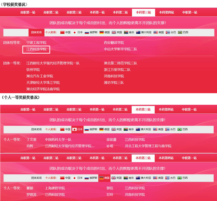 江科网讯(通讯员 胡杨)由商务部中国国际贸易学会和全国外经贸职业教育教学指导委员会联合主办的第七届POCIB全国大学生外贸从业能力大赛于11月28日上午圆满落幕。来自全国高校247支参赛队伍、4940名参赛选手通过POCIB国际贸易从业能力综合实训网络平台进行参赛。经过20天的激烈角逐,我校荣获本届大赛(全国)团体特等奖,其中徐铭蔓、罗锦涛、郭信等三人荣获个人一等奖,何小香、邓璟琼、张奇梦、成慧、黄红丽等五人荣获个人二等奖,闫斌、陈志勇、张河权、林汐澄、付丽霞、况彦虹、黄甜甜、胡莹、叶琼、李伊玲等十人荣获个人三等奖,桂睿阳、何群等两位荣获优秀指导老师一等奖。
