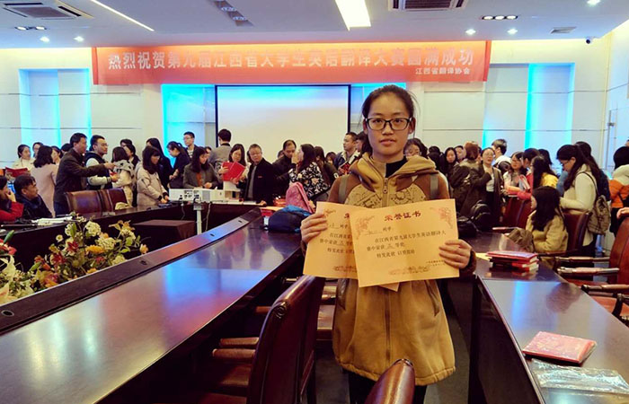 江科网讯(通讯员 杜习举)11月25日上午9时,江西省第九届大学生英语翻译大赛于南昌大学外国语学院举行。本次大赛由江西省翻译协会主办,南昌大学承办,旨在提高大学生的英语翻译及应用技能,为我省翻译事业和经济建设培养和输送翻译人才。来自我省25所高校的350多人参加此次比赛。经过激烈比拼,我校外语外贸学院杜习举老师指导的16本英语2班学生谢红、颜然然老师指导的15本英语5班学生梁娣荣获三等奖。