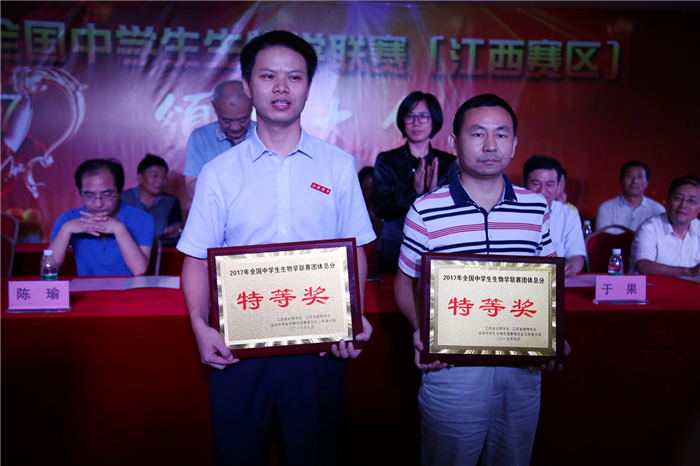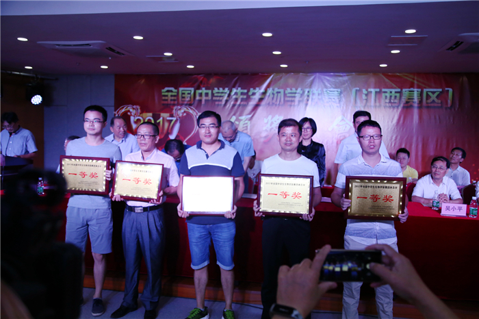 江西省植物理学会理事长杨柏云教授宣布了2017年全国中学生生物竞赛(江西赛区)团体奖和个人获奖名单。