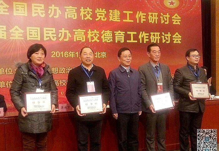 会上,我校党委申报的论著《核心价值力与干部领导力》(人民出版社)荣获第四届全国民办高校党的建设和思想政治工作优秀成果特等奖(全国仅四项,由教育部思政司、全国民办高校党建研究分会颁发),我校是我省唯一获此殊荣的民办高校。该论著是我校党委书记程样国以第一作者身份撰写的国家社会科学基金项目——《社会主义核心价值观对干部领导力的提升作用及其实现机制研究》的最终成果。