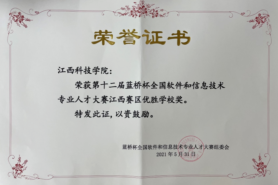 据悉,继2015年荣获第六届蓝桥杯全国软件和信息技术专业人才大赛江西赛区优胜学校奖后,我校在2020年和2021年连续两年荣获蓝桥杯全国软件和信息技术专业人才大赛江西赛区优胜学校奖。