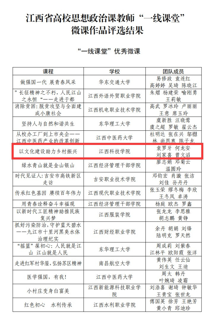 江科网讯(通讯员 刘清林)近日,江西省教育厅公布了江西省高校思想政治课教师“一线课堂”微课作品评选结果,我校报送的三门微课作品获评省级优秀微课,学校获评优秀组织单位。
