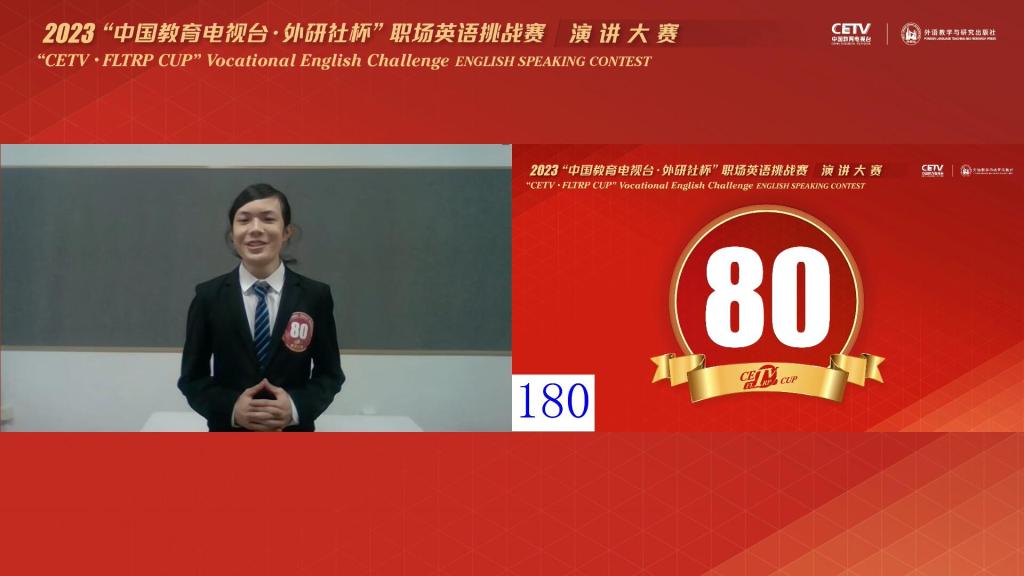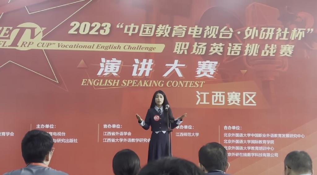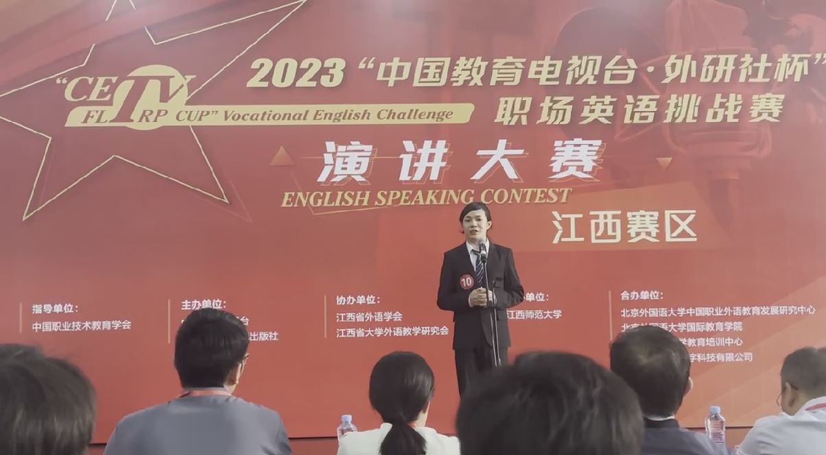 江科网讯(通讯员 戴睿)近日,2023“外研社·国才杯”“理解当代中国”全国大学生外语能力大赛决赛在北京圆满落幕。我校外国语学院商务英语专业崔羽喆同学以优异的表现在省赛中荣获演讲组特等奖并代表江西赛区参加全国总决赛,最终斩获演讲组国家级三等奖。