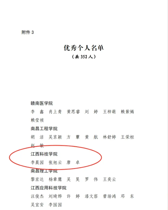 江科网讯(记者 何钰馨)近日,省委宣传部、省文明办、省教育厅、团省委、省残联、省学联联合发文表彰了2023年江西省大中专学生志愿者暑期“三下乡”社会实践活动优秀集体以及个人。我校“石榴花开 教育暖疆”实践服务队(指导老师:白尔娜依·哈力木热提、董金浩)荣获优秀团队称号,人工智能学院团委书记张旭云、外国语学院辅导员李晨园、学子唐卓荣获优秀个人称号,《学子下乡饶城,追寻青年之志》荣获优秀新媒体作品,学子黄环获评“扬帆计划”大学生实习专项优秀个人。