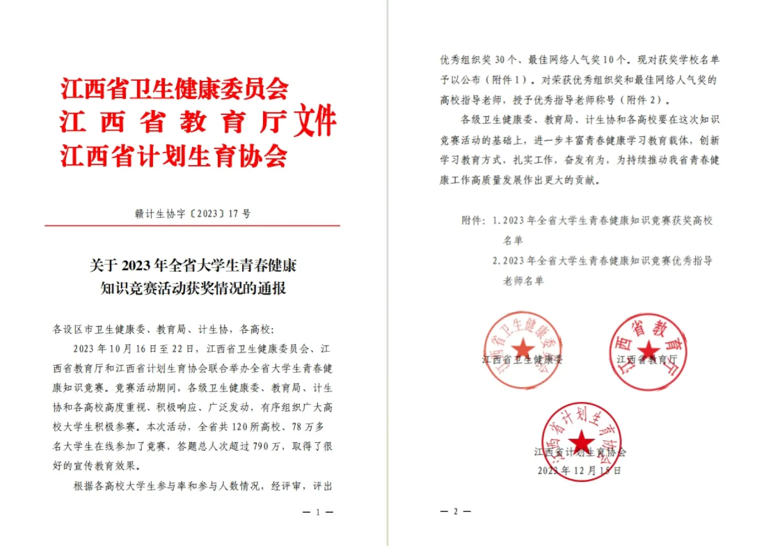 据悉,大学生青春健康知识竞赛活动旨在推进全省高校大学生青春健康教育,普及青春健康教育知识,减少性别暴力,减少非意愿妊娠,降低人工流产率和感染性病、艾滋病的风险,保护生育力,让每个人成为自己健康的第一责任人。我校学子积极参赛取得佳绩,充分体现了江科青年对健康生活的态度,展现了属于青年人的风采。