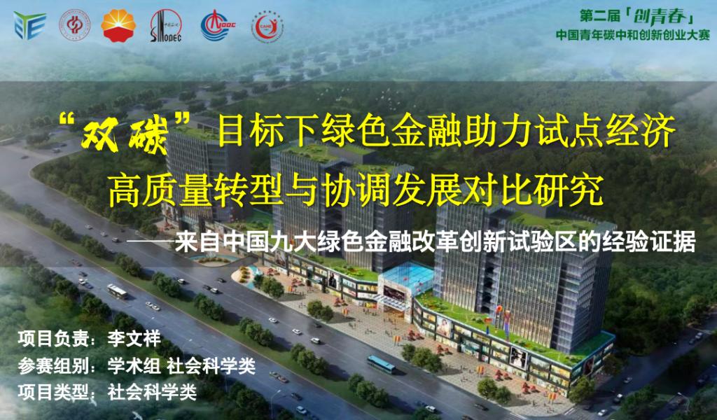 江科网讯 近日,第二届“创青春”中国青年碳中和创新创业大赛华东赛区决赛在华东理工大学落下帷幕,由我校财经学院鲁宇、潘发钱老师以及协同创新中心易星老师指导,财经学院李文祥同学负责的项目《“双碳”目标下绿色金融助力试点经济高质量转型与协调发展对比研究——来自中国九大绿色金融改革创新试验区的经验证据》荣获学术组金奖,并将代表华东赛区参加全国总决赛。
