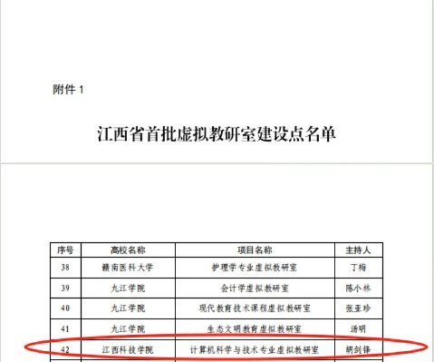 江科网讯(记者 何钰馨)日前,江西省教育厅公布2023年江西省首批虚拟教研室立项建设名单,由我校胡剑锋博士领衔的“计算机科学与技术专业虚拟教研室”成功入选为首批江西省虚拟教研室立项建设点。