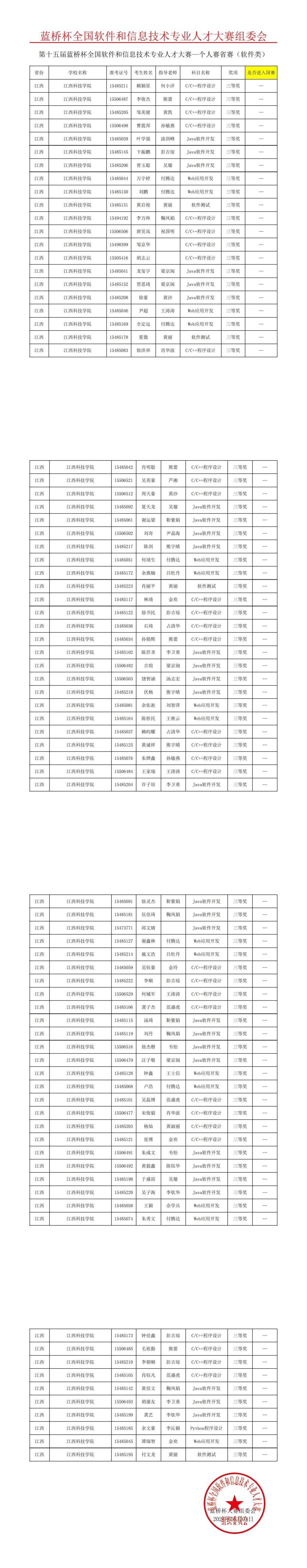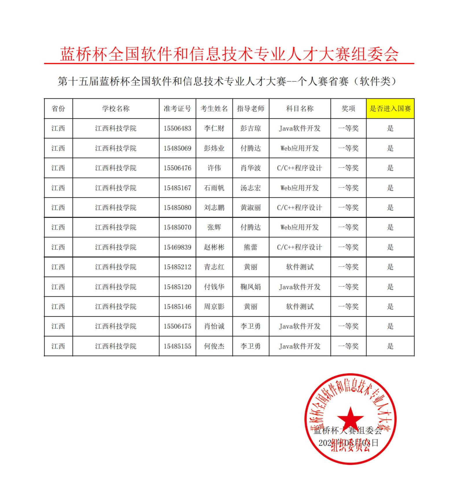 江科网讯(通讯员 王炜)近日,第十五届蓝桥杯全国软件和信息技术专业人才大赛江西省赛成绩正式公布,我校在此次大赛中共荣获省级一等奖12项、二等奖39项、三等奖109项。其中,获省级一等奖的12名同学将代表学校参加第十五届蓝桥杯全国总决赛。