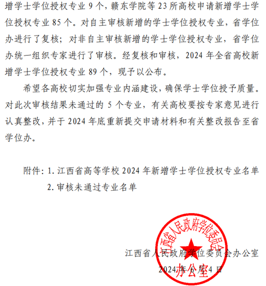 江科网讯(通讯员 秦琛)近日,江西省人民政府学位委员会办公室下发了《关于公布江西省高等学校2024年新增学士学位授权专业名单的通知》(赣学位办〔2024〕4号),我校跨境电子商务、虚拟现实技术和智能建造三个专业新增为学士学位授予专业,获得学士学位授予权。
