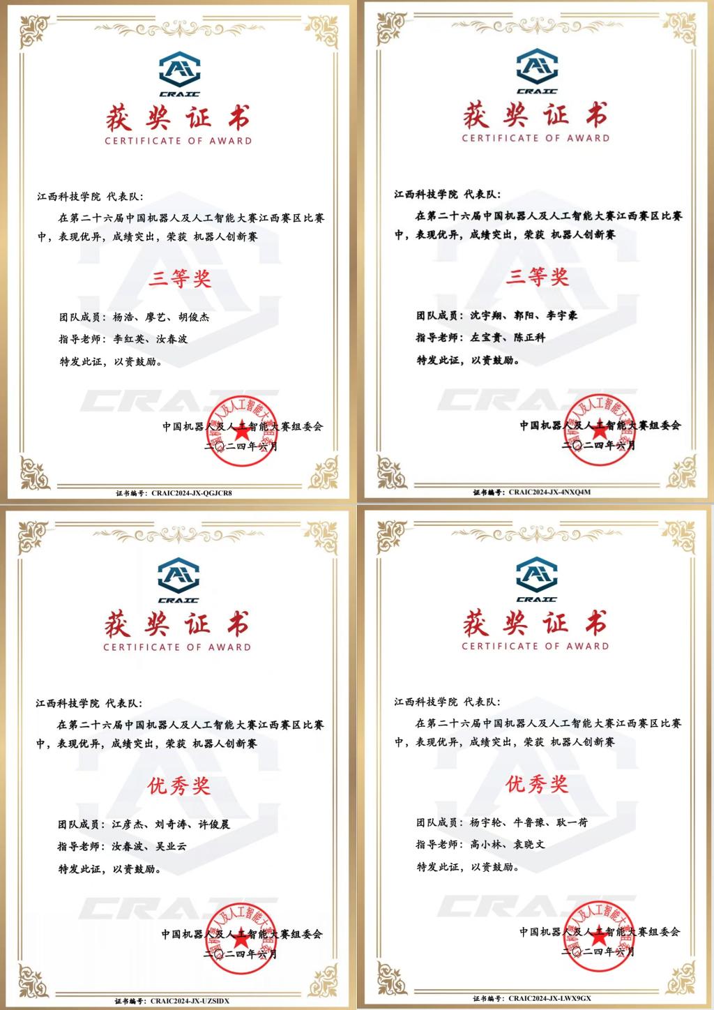 江科网讯(通讯员 张旭云)近期,第二十六届中国机器人及人工智能大赛江西省选拔赛圆满结束,我校人工智能学院学子荣获江西省赛区三等奖2项、优秀奖3项。