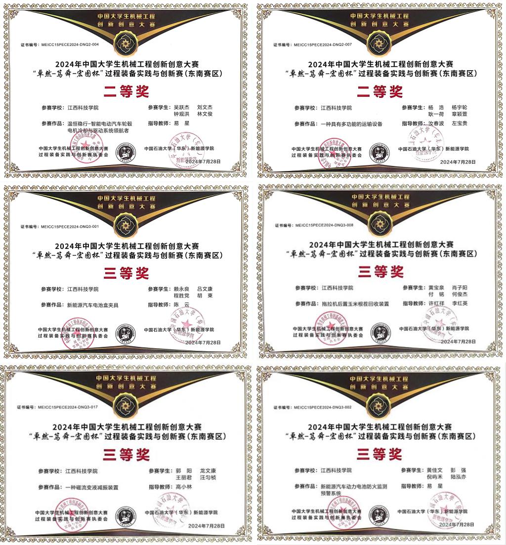 江科网讯(通讯员 张旭云)近日,2024年中国大学生机械工程创新创意大赛“卓然——笃舜——宏图杯”过程装备实践与创新赛(东南赛区)圆满落幕。来自全国170多所高校同场竞技,展开激烈角逐。最终,我校人工智能学院学子荣获东南赛区二等奖2项、三等奖4项。