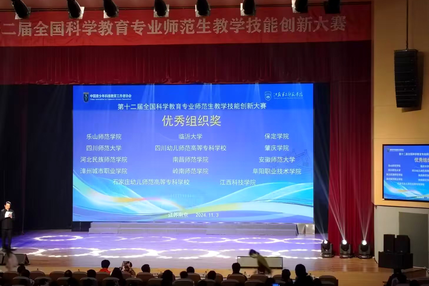 江科网讯(通讯员 汤佳伟)11月3日,第十二届全国科学教育专业师范生教学技能创新大赛在南京落下帷幕。我校教育学院学子凭借卓越的表现和扎实的专业技能,荣获全国一等奖3项(分别为:魏维航、周晓雅、岳岩)、二等奖2项(分别为:熊晨晰、方捷)、三等奖2项(分别为:董欣雨、刘宇捷),江西科技学院荣获优秀组织奖。