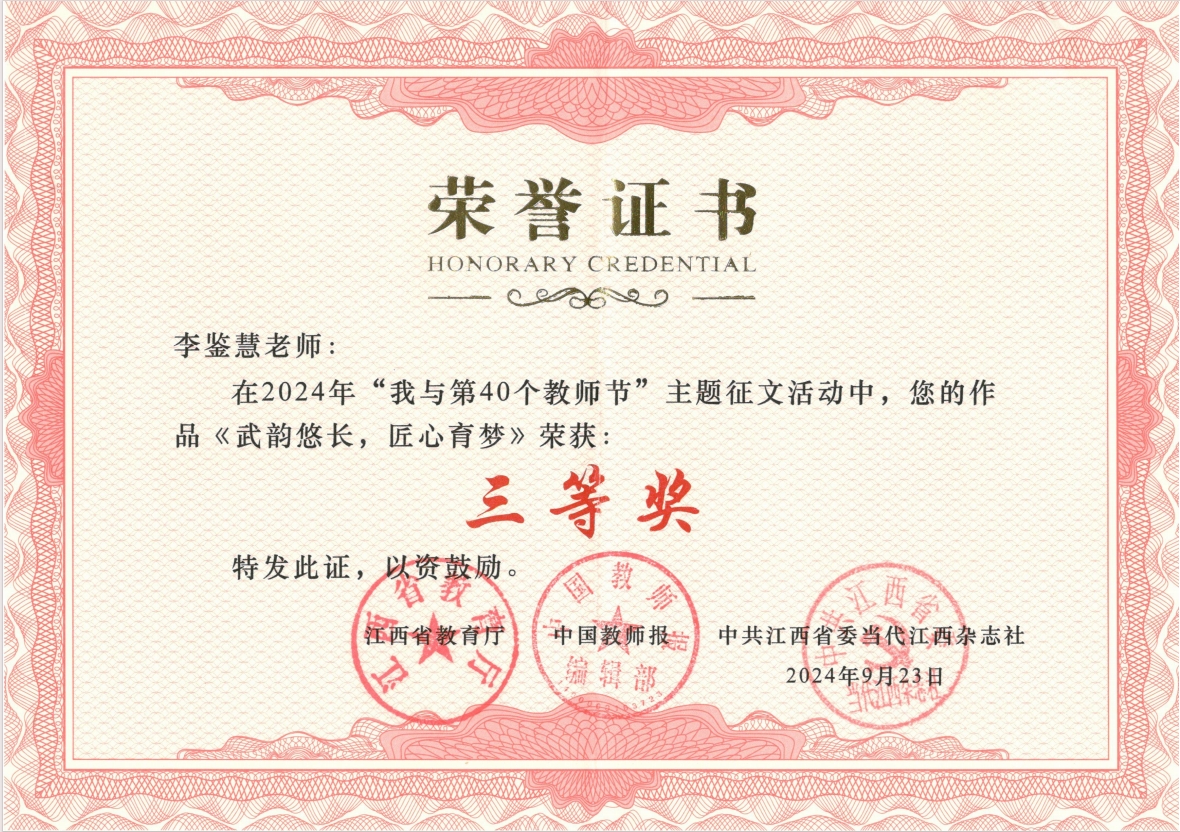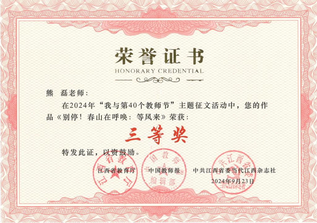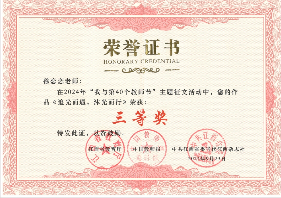 据悉,此次主题征文活动由江西省教育厅、中国教师报、省委当代江西杂志社联合举办,旨在深入学习贯彻习近平总书记关于教育的重要论述和考察江西重要讲话精神,大力营造尊师重教的良好氛围。