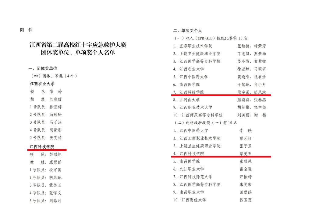江科网讯(记者 何强江)近日,由江西省红十字会、江西省教育厅主办的江西省第二届高校红十字应急救护大赛在南昌圆满落幕。我校代表队凭借扎实的专业技能和出色的临场表现,荣获团体三等奖;段宇函、胡凤琳同学获双人(CPR+AED)技能三等奖,蒙美玉同学获创伤救护技能二等奖。