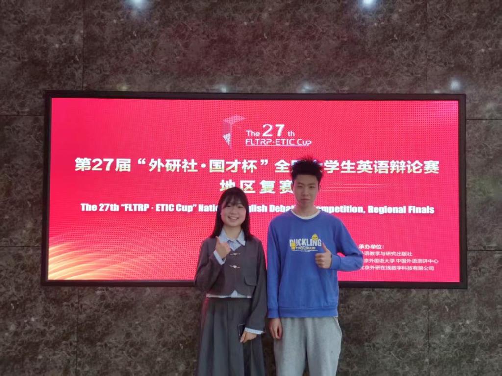 江科网讯(通讯员 刘阳璐)近日,第27届“外研社·国才杯”全国大学生英语辩论赛(华南地区)复赛成功举办。我校外国语学院武妍、信息工程学院李稷伟组成的辩论队伍(指导教师:刘阳璐、丁紫封)荣获三等奖。