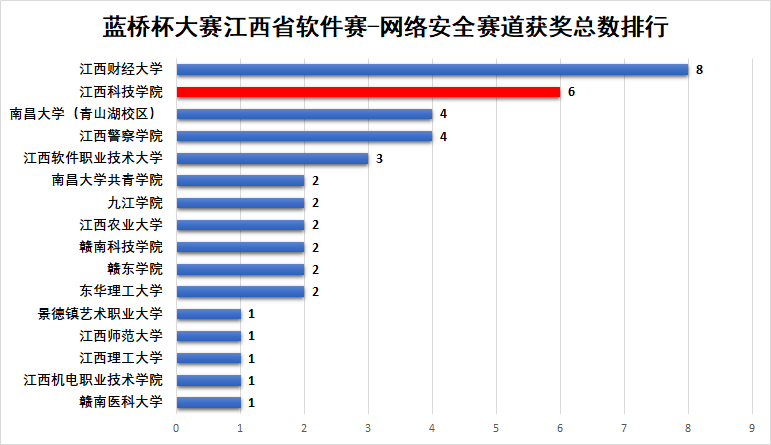 江科网讯(通讯员 鞠凤娟)近日,蓝桥杯全国软件和信息技术专业人才大赛江西赛区获奖名单公布,我校学生凭借扎实的专业功底与卓越的创新能力,在软件赛道、电子赛道、项目实战-智能体开发赛道、网络安全赛道的总体比拼中,斩获省级奖项338项(一等奖28项、二等奖108项、三等奖202项),强势登上全省民办高校榜首。其中,项目实战-智能体开发赛道获奖总数荣膺全省第一,网络安全赛道获奖总数荣膺全省民办高校第一。根据大赛规则,获省级一等奖的28名同学直接晋级全国赛。