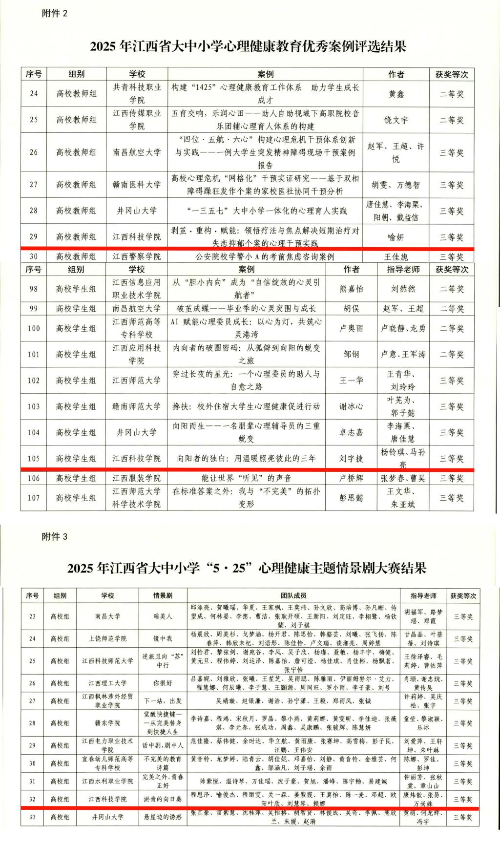 江科网讯(记者 何强江)近日,江西省教育厅公布了2025年江西省大中小学“5·25”心理健康教育系列活动评选结果。我校师生积极参与,共斩获3个奖项。