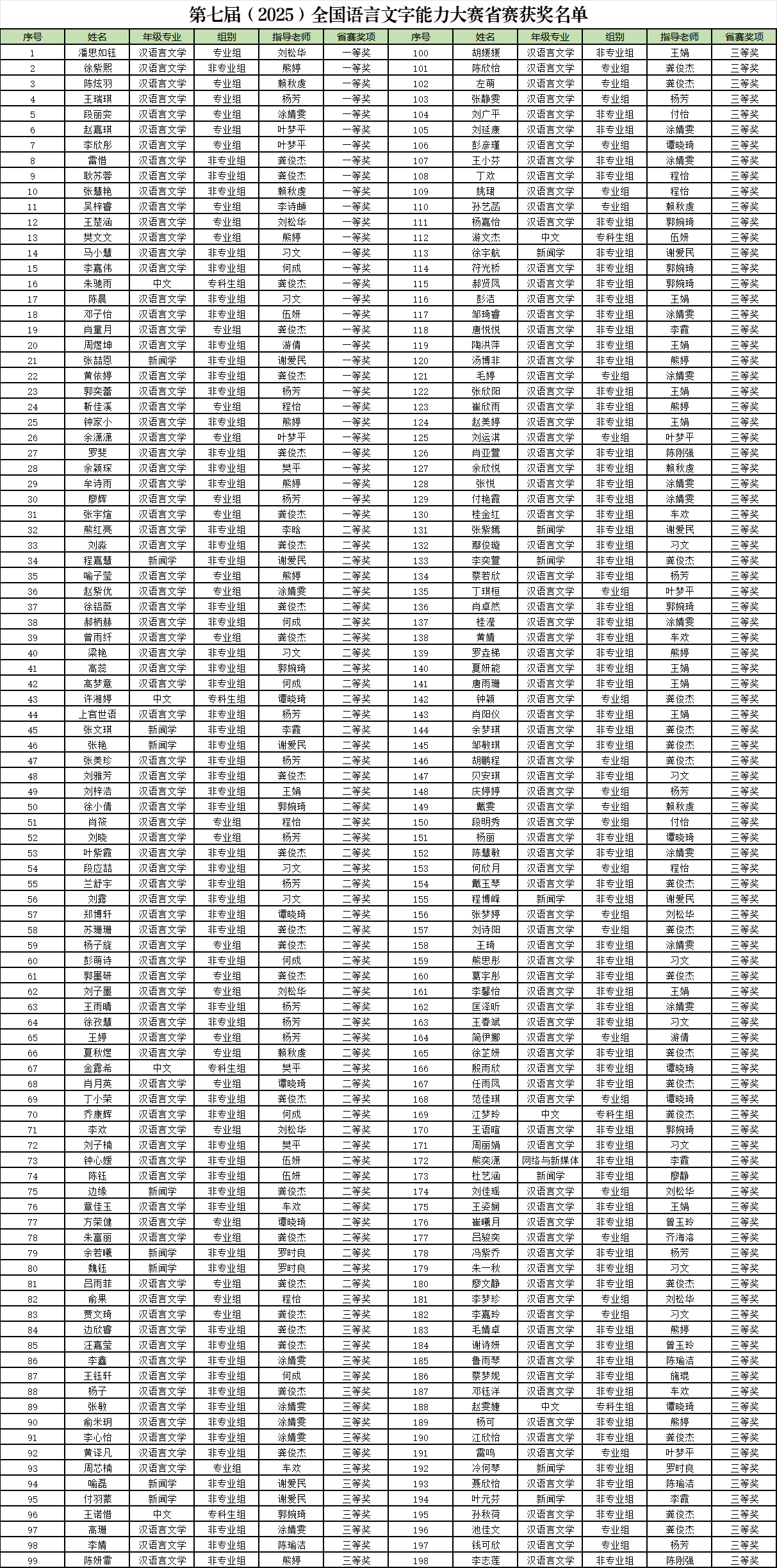 江科网讯(通讯员 何成)近日,第七届全国大学生语言文字能力大赛省赛结果揭晓,我校学子凭借扎实的专业基础,斩获一等奖31项、二等奖50项、三等奖117项,并成功入围全国总决赛。