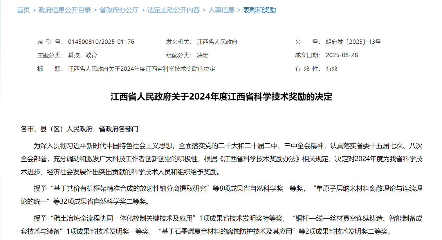 近日,江西省人民政府发布了《关于2024年度江西省科学技术奖励的决定》(赣府发〔2025〕13号),我校智能工程学院梁艳博士参与的《晶面工程调控半导体纳米晶表界面特性及机制研究》项目获得省科学技术奖自然科学奖二等奖。