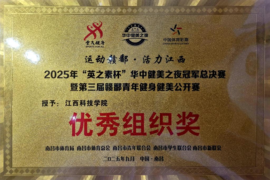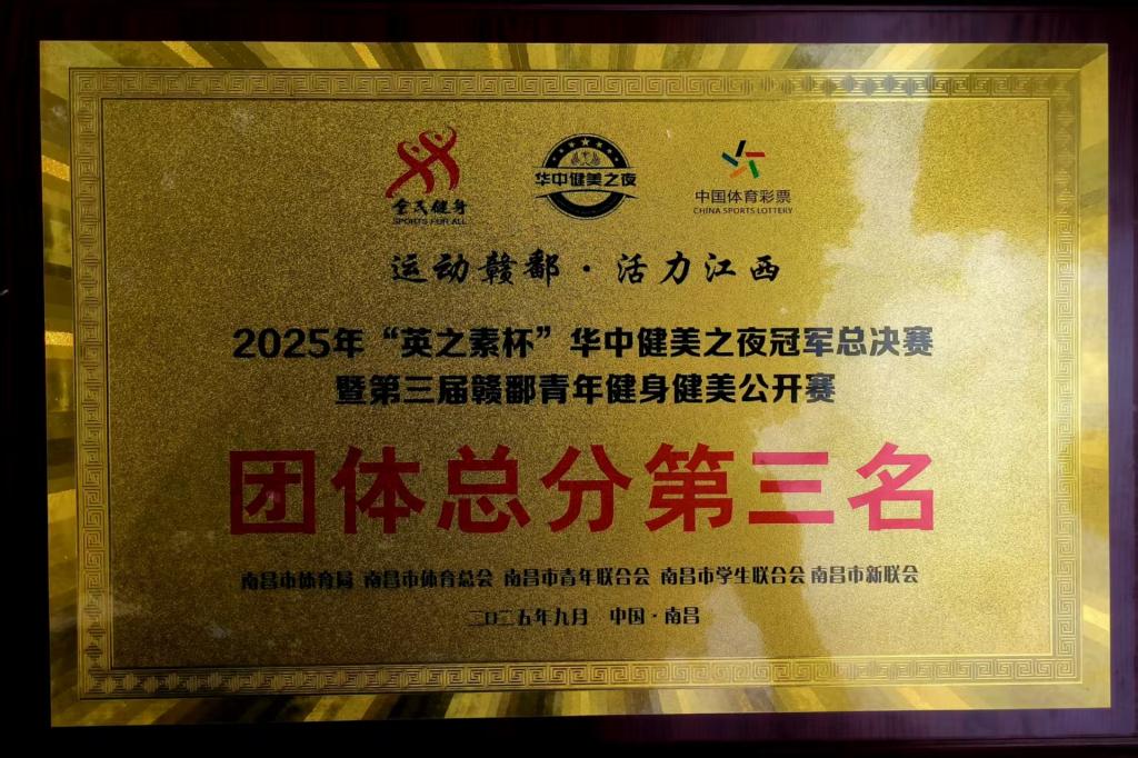 江科网讯(记者 张昱 黄宗信)近日,2025年“英之素杯”华中健美之夜冠军总决赛暨第三届赣鄱青年健身健美公开赛圆满收官。在此次赛事中,我校健身健美梦之队载誉而归,共荣获12张证书、6块奖牌,其中包括两金两银两铜,团体总分排名第三,学校荣获优秀组织奖。