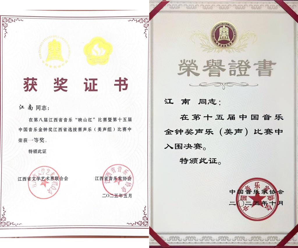 江科网讯(记者 何强江)近日,第十五届中国音乐金钟奖各项赛事圆满收官。在这场堪称“中国音乐界最高荣誉”赛事中,我校音乐舞蹈学院教师江南成功入围金钟奖决赛,刷新了我省在该赛事声乐(美声)组项目中的历史最佳成绩。