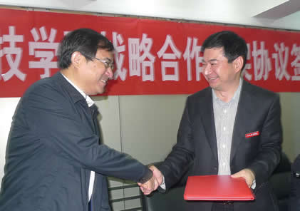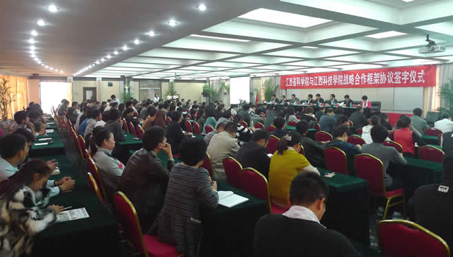 于果董事长在讲话中说,我校自建校以来,一直秉持“科研兴校、科研强校”的理念,满怀激情办教育,求真务实搞科研。近年来,学校按照全面推进、重点突破的原则,进一步加快了发展步伐,逐步提高了教学质量和办学水平。省科学院以科技兴赣为己任,努力解决江西经济社会发展中的关键技术问题,大力推进产学研合作,是全省科技创新的主力军。今年6月,王海厅长来我校担任校长后,提出与省科技厅、省科学院、省知识产权局合作。这一提议得到了省科学院领导的肯定与热情支持,我们在很短的时间内就双方开展合作达成了一致。双方战略合作框架协议的签署,标志着双方合作的正式开始。希望双方加强交流,紧密协作,重点在人才培养、科技平台建设、科技项目开发和科技成果转化等方面开展合作,努力为科研人员搭建交流合作的平台,为理论研究、科学普及、技术开发、发明创造开启广阔的前景,共同为培养创新型人才、提高学术能力和科研水平、促进地方经济社会发展作出贡献。协议的签订也标志着院校合作进入了新的发展阶段。我相信,通过搭建这种高层次的创新发展合作平台,必然会对学校在增强自主创新能力和提升学校核心竞争力等方面发挥酵母作用、辐射作用和示范作用;也必然会对学校的人才培养、科学研究、成果转化等方面发挥良好的促进作用。他希望双方以签署战略合作框架协议为新的开端,把双方“地相近、名相近、人相亲”的优势传承好、发展好;依托各自的资源,坚持以需求导向、全面开放、深度融合、创新引领为原则,广泛开展深层次交流合作,开展协同创新,不断推进科技成果转化,不断推进科技创新,形成科研与教学相互促进,实现科研为教学服务的良好局面,共同实现互利双赢、和谐发展,共创美好的明天。