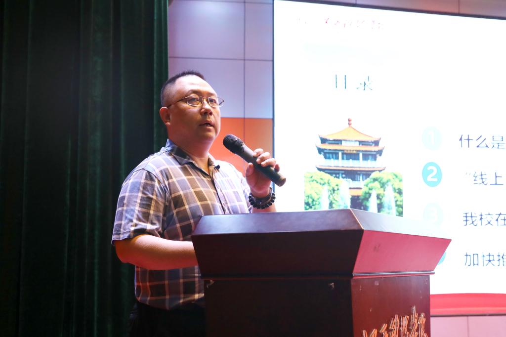 会上,教务处处长马勇以“熔铸金课、助推我校教学改革”为题作主旨报告。他从“金课”的内涵出发,提出大力发展慕课,建设线上“金课”,并对国家有关文件进行解读,例举相关数据,让大家对在线开放课程建设有更深刻的认识。他还汇报了我校在线开放课程的现状,提出了加快推动我校在线开放课程建设的举措。