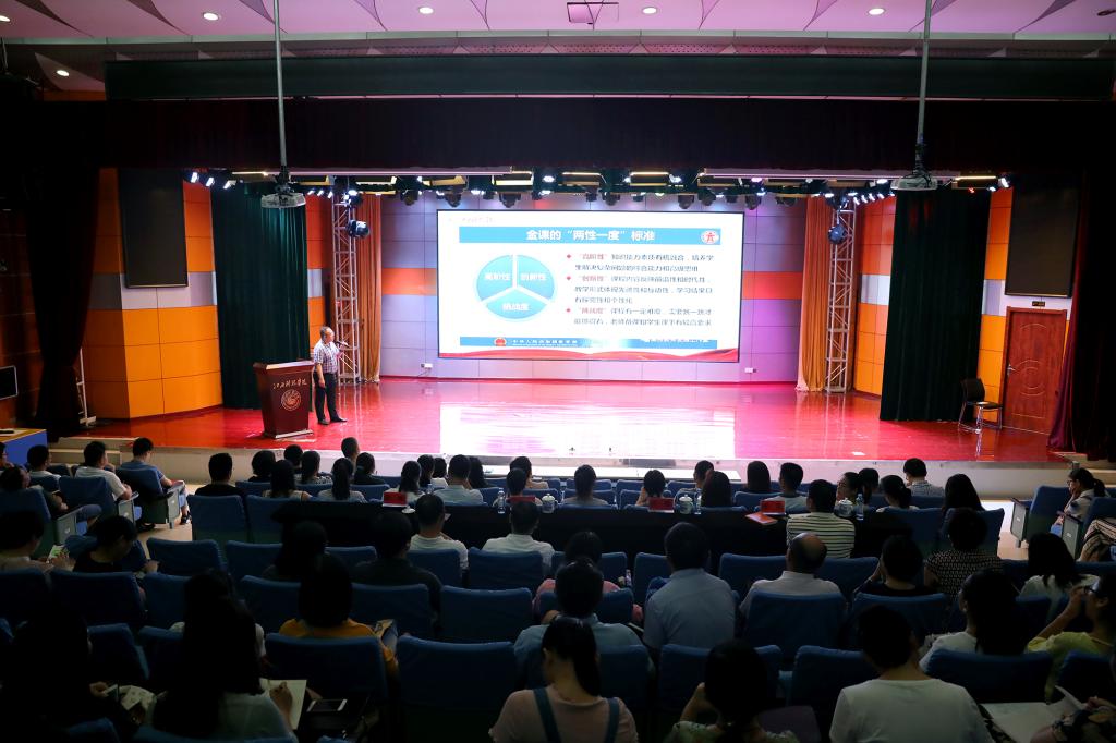 江科网讯(记者 何强江)为切实提高课程教学质量,助力教学模式改革与创新,进一步提升教师教学能力,7月3日上午,我校在报告C厅举办打造“金课”专题讲座暨精品在线开放课程培训会。万哨凯副校长同教务处、督导处、科研处全体人员,校级督导,以及各教学单位代表一道聆听讲座。