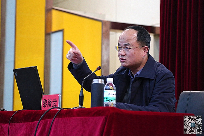 在最后的互动环节,师生积极发言提问。答疑中,黎隆武以其渊博的历史知识与幽默风趣的语言赢得阵阵掌声。