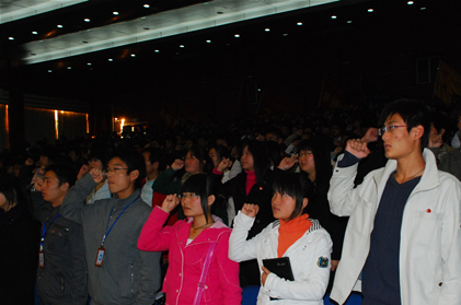 全体培训班学员在学生会主席徐志海同学的带领下宣誓,学生代表邹婷同学在会上发言。