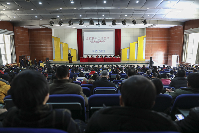 会上,校领导为获评十佳科研标兵和优秀科研集体的代表颁奖。