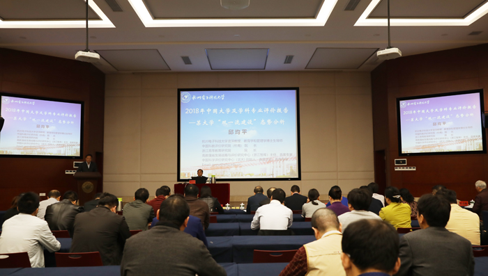 邱均平教授从评价目的与意义、指导思想与原则、对象与指标体系、数据来源与处理、评价结果等方面对2018年中国大学及学科专业评价报告进行了详细解读。他强调,开展中国大学及学科专业评价必须以高校的社会职能和贡献为基本标准,正确处理好十大类关系。开展中国大学及学科专业评价要分层次、分类型、分学科,力求做到科学、合理、客观、公正。他指出,高校应当正确对待大学排名,要重视排名,分析和利用排名来促进学校发展。