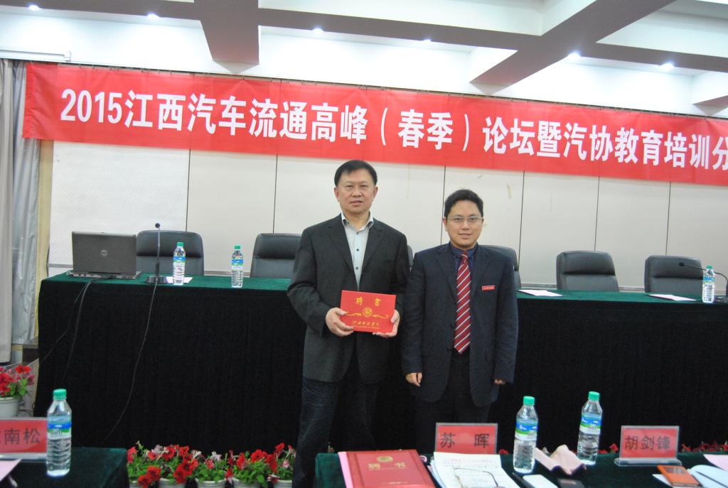 仪式结束后,苏晖先生表示自己非常荣幸能成为江西科技学院的一名教授,希望在这人才欠缺的时代能看到学生们好的发展。胡剑锋副校长同样对此提出了期望,期望学生能早日成才,在未来的道路更顺畅。接下来苏晖先生进行了2015年汽车市场应思考的若干问题的演讲,他围绕中国汽车利润已转至售后、汽车消费新动向、中国汽车市场互联网思维等问题详细的讲解当今我们应在汽车行业所遇到的尖锐问题。苏晖先生接地气的介绍,让教师和学生们都简单的了解了汽车行业所面临的问题,并对二手车市场有了深层次的了解。然后在互动环节中,通过学生提问,苏晖先生解惑,让现场的气氛更加活跃,使得演讲也更加精彩。在活动的最后,胡副校长做总结发言,他说这场演讲让所有人收获了知识,让教师们也得到了一些启发和思路。就此仪式也在掌声中结束。