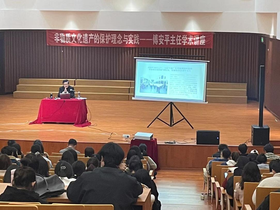 为了继承和弘扬中华优秀传统文化,增强文化自信,更好地保护和传承非物质文化遗产,进一步加强对我国丰富多彩的文化遗产的研究,2023年3月3日下午14:30,非物质文化遗产的保护理念与实践专题学术讲座在求真音乐厅顺利开展。本次活动由科研处(学科办)主办,音乐舞蹈学院承办,非遗研究基地协办,由江西省非物质文化遗产研究保护中心副主任傅安平主讲。