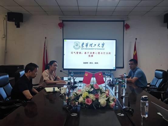 2023年6月12日下午,财经学院特邀东华理工大学经济管理学院教授、中国高等院校市场学研究会常务理事、江西省“四个一批”青年英才、江西省民营经济研究中心智库专家赵建彬博士来校讲学。赵建彬教授在教2楼518会议室做了“运气营销:基于消费心理与行为的观察”的主题报告。报告会由财经学院市场营销教研室主任罗文琦主持,财经学院院长黄爱科及部分学院师生参会。