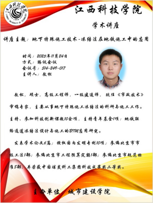 本次学术讲座为地下特殊施工技术——冻结法在地铁施工中的应用提供了一个交流与学习的平台,给老师和学生们提供了一个分享经验、互通有无的机会,提高了教师专业能力,加强了学生的施工实践经验。