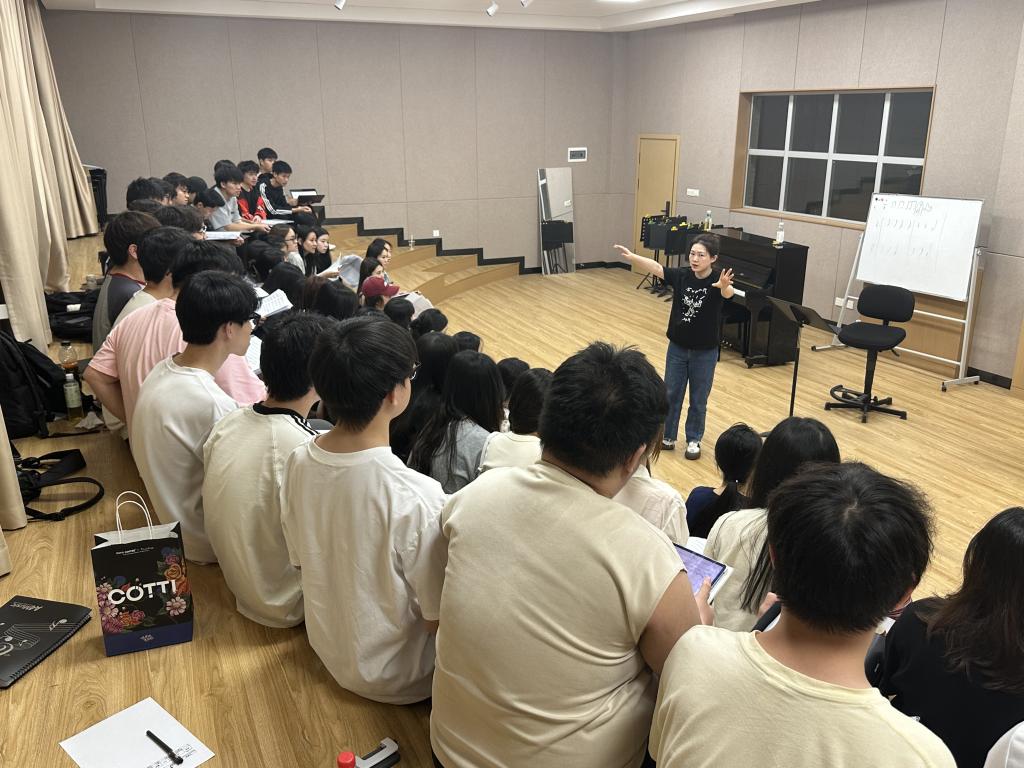 2024年5月14日,我校音乐舞蹈学院邀请南昌大学交响乐团常任指挥,青云谱教师合唱团常任指挥周静雅博士来我校举行“流行合唱作品的改编思路及排练诠释”的专题讲座。