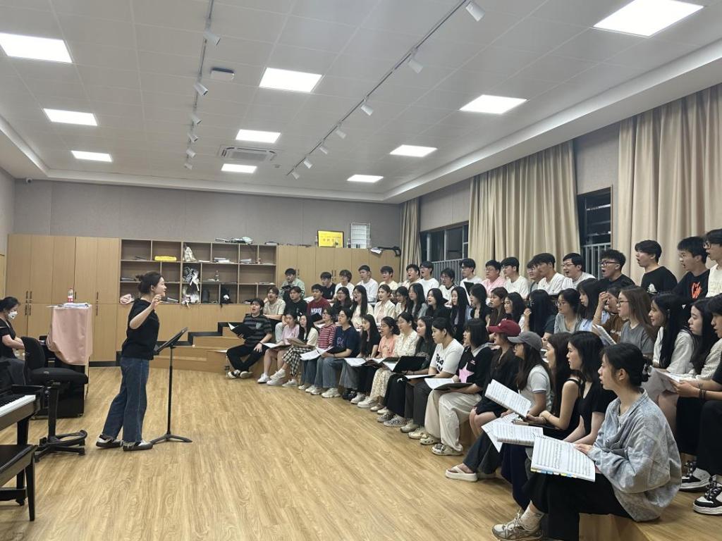 周博士同时也提醒合唱团的同学们,打好基本功,提高鉴赏力,积累相关的音乐才能,提升综合能力,对创作来说至关重要,同学们积极参与互动,并跟随周博士一起排练了《是否》和她亲自改编的作品《篇章》,为同学们上了一堂生动的合唱体验课。
