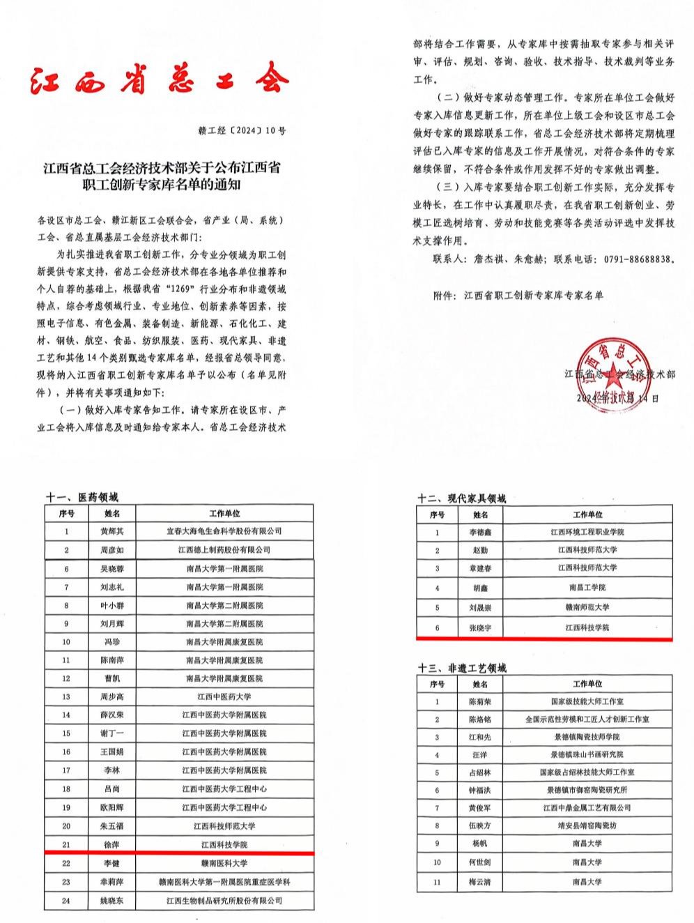 我校教师入选江西省职工创新专家库