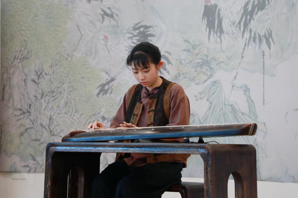 活动伊始,在艺术沙龙室开展“画韵琴心”古琴雅集表演,于果、易峰、赵梦瑶、海月依次登台抚琴,悠扬的琴声婉转悠扬,与即将展出的花鸟画雅致意境相得益彰,提前为现场嘉宾带来了一场视听与心灵的双重盛宴。